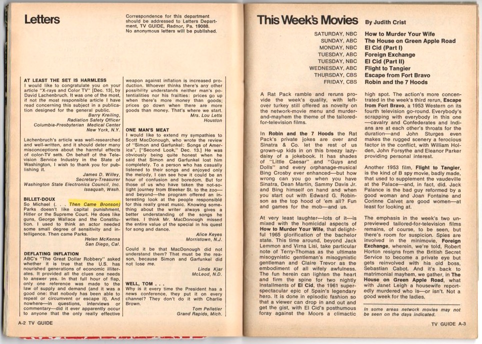 Then Came Bronson Ep. 16 which aired 14 January 1970 as listed in TV Guide during the week of 10 - 16 January 1970
