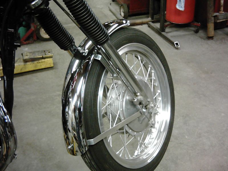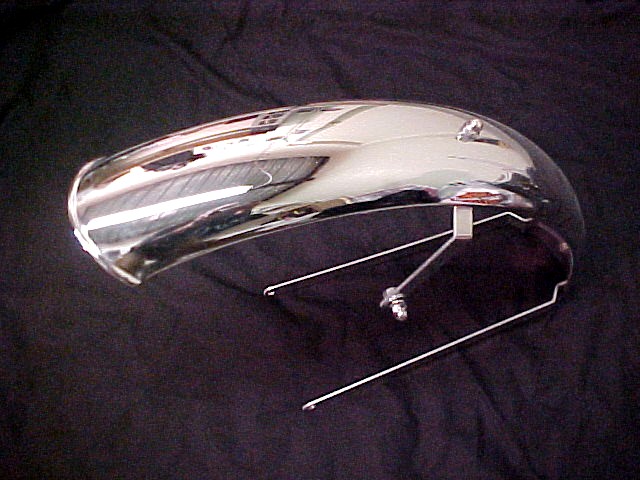 It is generally believed that Bud Ekins who did the stunt work for TCB owned a Triumph dealership and changed out the stock Sportster front fender to give it a chrome look as well as a sleek one with the Wassell Triumph front fender. The fender struts are custom made to attach it to the Sportster's front fork. Attachment tabs will need to be added to the forks for the lower strut.