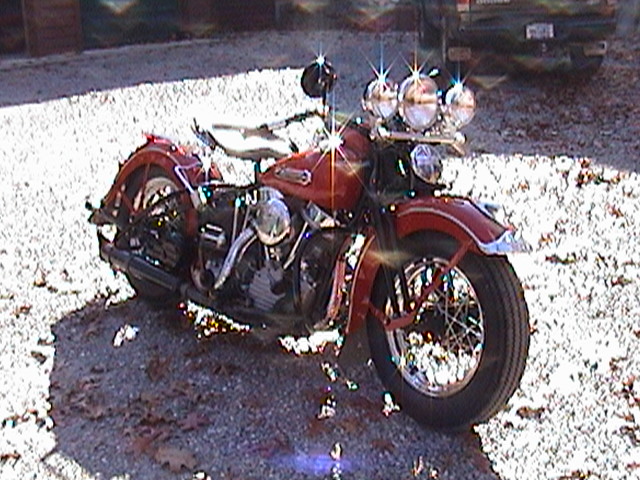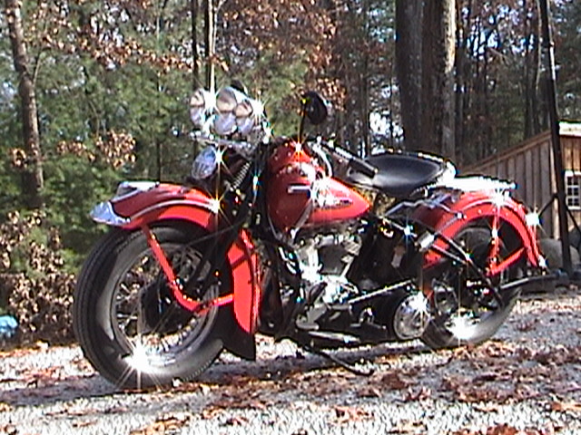 This red bike is a 1948 Harley Davidson EL. It was my first restoration. The first picture is the before photo when it was rolled out of the barn. |