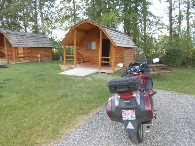 No one was home, so I walked further down the road to a school and found a lady that agreed to bring me some gas. The ironic part is I have a one gallon gas can with me and was saving it to use in Alaska. Well I got to use it today. Only 465 miles today which means 677 tomorrow to Seattle. Staying at my first KOA in a cabin tonight. |