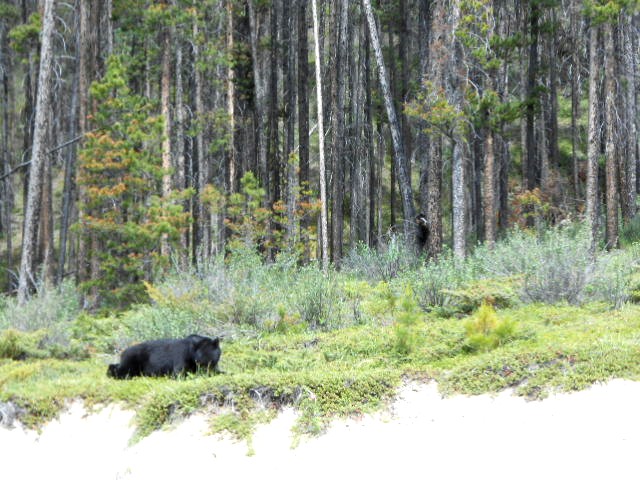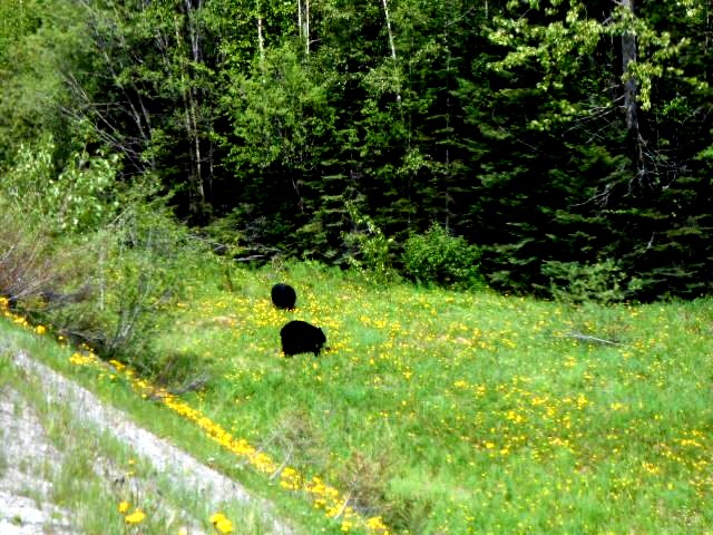 Finally saw some live wildlife to day, two bears eating along side the road. I turned around and went back to take pictures. I thought the sound of my engine would scare them off, but it did not. So I remembered reading that bears do not like noises, so I thought I would test this out with the horn on my bike, no effect at all. Note to self: "Bike horn will NOT scare bears away! Staying at a motel to night!" |