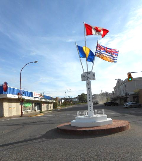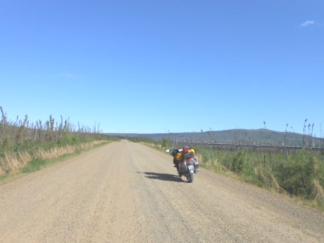 This is also called the Gold Rush Trail. Very scenic riding along the Fraser River in a valley with snow peaked mountains on both sides. Great weather and a great ride! Stopped outside of Williams Lake at a camp ground and the walls of my tent are still fabric thin. Tried ear plugs and that didn't work. So up early, like 5am and hit the road. Drove in to rain and it looks like rain for the rest of the day. Goal for today is Dawson Creek. This is mile 0 for the Alaskan Hwy. Probably get a motel room this time. North to Alaska, were goin' North the rush is on! |