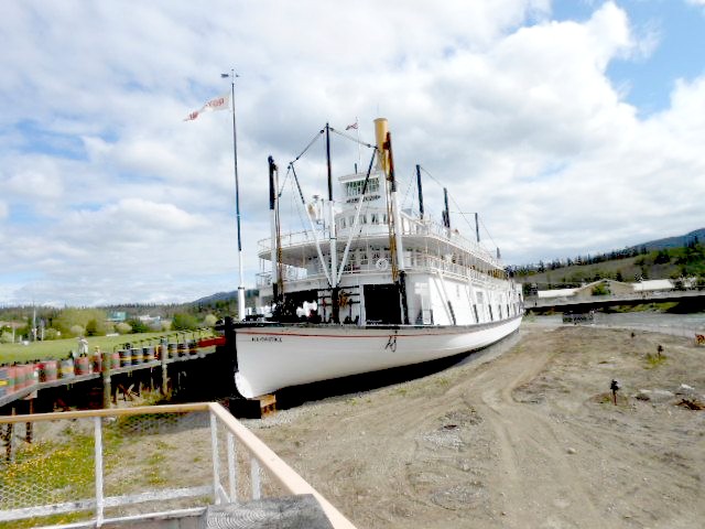 | Note: The road bed on the Nisutlin Bay Bridge is a see-through metal grating that allows you to watch Teslin Lake underneath as you drive over it. Gas, Groceries and motels are available at the north end of the bridge at the city of Teslin (Pop~480). At 1917 feet long, it is the longest bridge on the Alaskan Highway. The SS Klondike was the largest on the Yukon, she carried mail, supplies, passengers and silver ore along the 460 mile route between Whitehorse and Dawson City until 1955. |