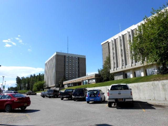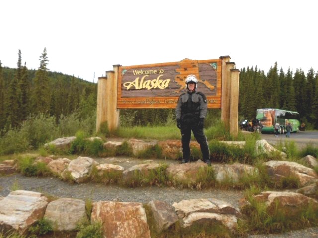 Slept in a little, then headed for the border, about 27 miles down the road. Met a tour bus full of tourist and got a lady to take my picture. Many of them were very interested in my trip and where I was from. The border crossing went smoothly, the officer questioned my vanity plate and wanted to know why I had Charles Bronson on my license plate. I did not have to explain. He said it should have been Hansen, ha! ha! I said, out loud. Made it to Fairbanks in time for lunch and then checked in to the University Of Alaska Fairbanks dorm. Some one here on the faculty is big in to motorcycles and set this up for motorcyclists traveling to Alaska. I have not slept in a dorm since 1975! The good old days, right? These are the good old days! Nice rooms, bath and showers down the hall, about half the price of a motel or less. I will be using this as a base to leave most of my gear when I head for Dead Horse on Sunday. Total miles today was an easy 356. |