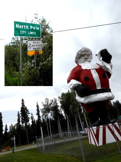 Today I took my bike to the Honda, Harley, Victory, BMW dealer for an oil change and a new rear tire. The only tire they had was a Pirelli Scorpion, not cheap! Too much interstate riding leaves a flat spot down the middle. Lots of curves helps reduce this condition. Must find more curves! (see picture). Met Karen and Tank at the dealership. They were having their Harley serviced, had lunch with them and talked about life in Alaska. I told them about seeing 13 bears on my way to Fairbanks and they told me that in the 36 years they have lived here they have seen maybe 4 or 5! Decided to ride to the North pole and visit the 40 foot Santa. Went to Mass at 5:30 and then went to a Salmon Bake for dinner, very good all you could eat Salmon and Alaskan King Crab! Took all the gear off the bike and will only take what is essential and covered it. A few more riders showed up at the dorms. It will be interesting to see how many of them head for Dead Horse (Prudhoe Bay) tomorrow. Going to the farthest point you can drive in North America on Fathers day! |