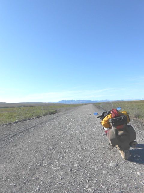 June 17th and 18th. Well I guess I will be riding to the southern most part of North America, the Florida Keys, before the year is up. That is what I have been telling folks I would do if I made it to the northern most part of North America that you can drive to which is the town of Dead Horse at Prudhoe Bay. Going to Dead Horse is not really about the destination it is about the journey, and not just the road I took to ride there but the path I took to get to ride there. Speaking of the road though...it was one of the toughest I have ever been on and it was mostly because I chose the wrong tool for the job and the weather. I should have had a dual purpose type bike with long suspension, knobby tires and a couple of hundred pounds lighter. My bike is a street bike, not a dirt bike, although it is a dirt bike now, (see pictures). For a street bike, my bike performed very well and my old Enduro racing days payed off too. |