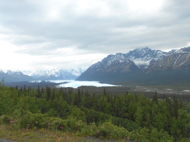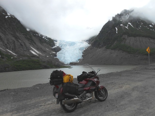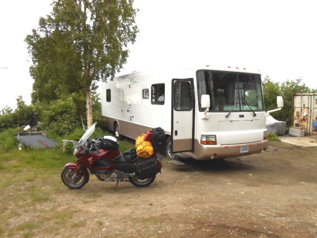 Tuesday the 19th I hung around Fairbanks, did some laundry and went to the museum here on the University of Alaska at Fairbanks (UAF) campus. Very nice museum of Alaskan history. I received three emails, one from Joyce, one from Jim W. and one from a guy by the name of James. James used to be neighbors with Joyce and Birney when they lived in Hawaii. I was invited to come visit James in Anchorage and so I decided to ride down and stay with him yesterday, about 360 miles. On the way I saw a giant Igloo for sale. Visited with James and his wife Robyn, we talked about Birney, TCB, motorcycles, cars and RV's until after midnight and could have kept going. Slept in his restored RV, very nice! Today I headed northeast to the town of Tok for the night. Saw a Glacier on the way, and rode about 325 miles today. Tomorrow I will cross the border back in to Canada and spend the night in Dawson City, Yukon Territory. (see new map link at the top of the page for my ride home) |