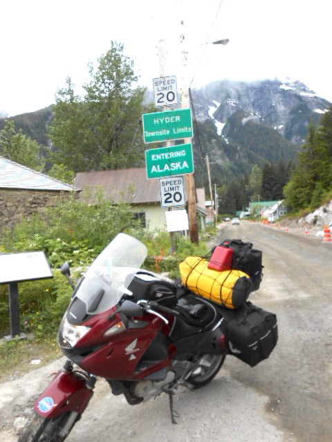 Spent the night at a campground in Dease Lake, one of the nicer ones. Curt, the Goldwing guy from New Hampshire, talked me in to going down the Cassiar Highway. So, we decided to go back to Alaska and stopped at Hyder, AK. The southern most town in Alaska you can drive to from the lower 48. It is a one way in and one way out town with a Canadian Border crossing to get out. Saw another glacier today. It has been raining most of the day and the temperature in the 40's. Staying in Houston, BC. tonight. |