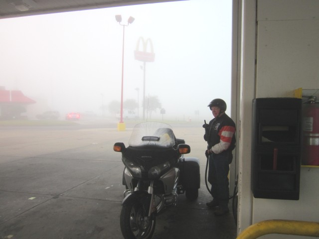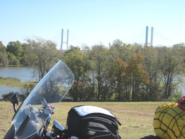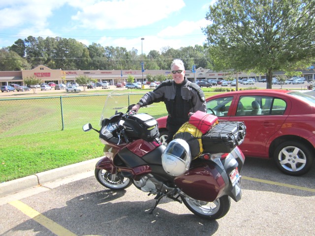 Sunday, October 28, 2012: Hello Family and friends! First day of the trip went off with out a hitch. The temps were in the 40's, hit in the low 50's and then stayed in the low 40's for rest of the day. Left out a 8:30 AM for Vicksburg, MS. on purpose to meet up with my fellow Honda retiree Bill H., 241 miles from my apartment to Cracker Barrel on one tank of gas! That is a new record! Poor Bill with his Honda Goldwing Trike was getting about 140 miles to a tank! So we stopped more often to not only fill our tanks, but at our age to empty our tanks! |