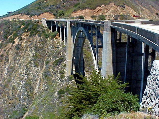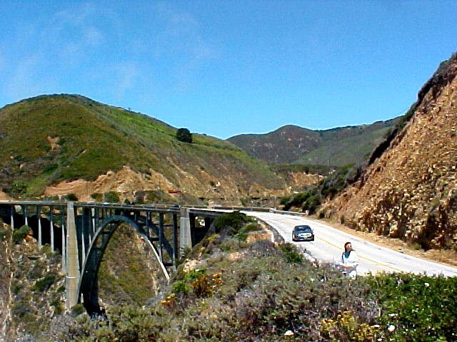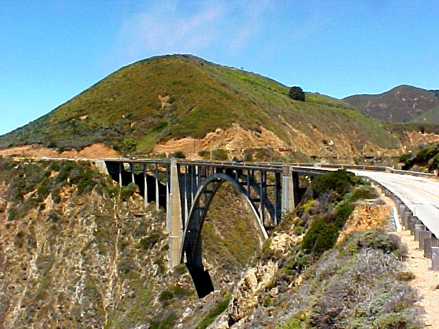 The bridge is famous as part of the opening credits for TCB. Located 10 miles south of Carmel Highlands on California Coast Highway 1. Note the Three Amigos on the left with Jim Bronson by the bridge. Larger pix. The event on March 21st, 2009 was a success to commemorate the 40th anniversary of the Pilot movie (March 24th) here. We enjoyed the bridge, and spent the weekend enjoying the beauty of the canyon, the bridge and ocean. We plan to do it again this September to honor the 1st Episode, join me, details will be forthcoming later this summer. |