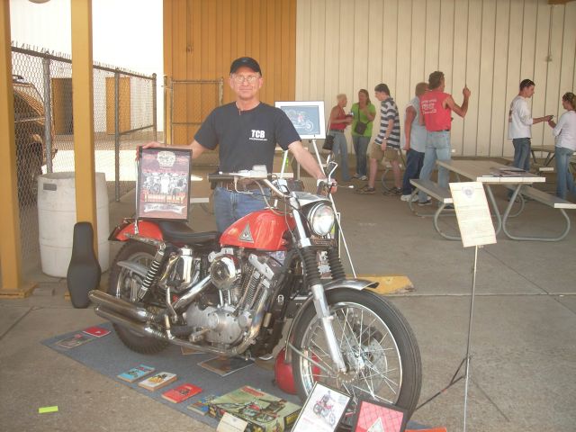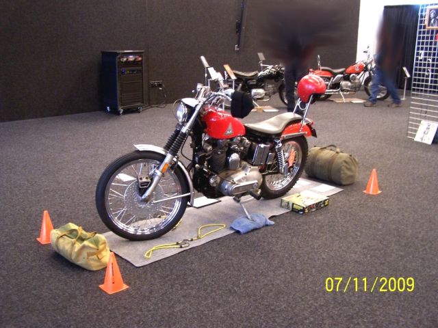 On display at the Antique Motorcycle Club of America show in Davenport, Iowa where it won 2nd in the Period Modified Class. |