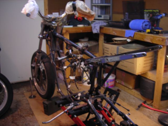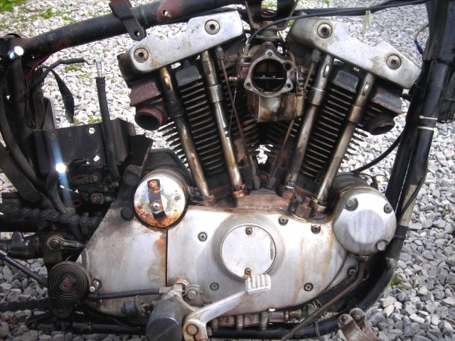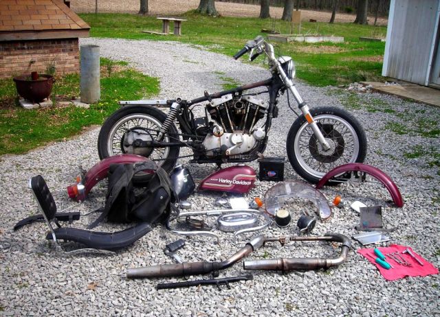 The easy part, taking everything off. It must have been the dirtiest Harley around. I was not big on cleaning it, but I regularly sprayed it off at the coin-op carwash that I owned and rode it to everyday. |