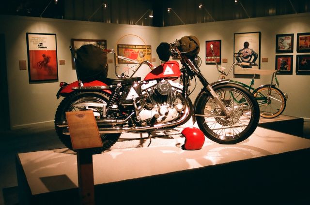 Setting up the Bronson display at the Harley Davidson Museum Exhibit room in Milwaukee in July 2009 |