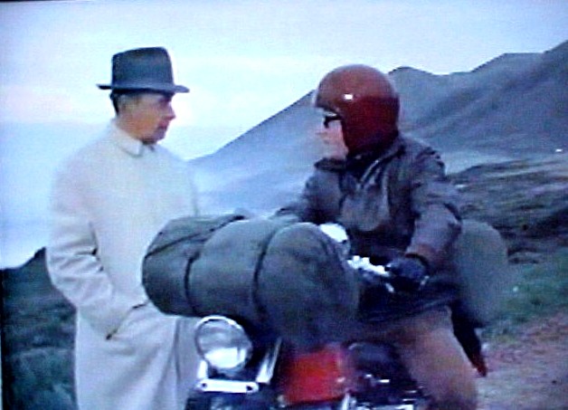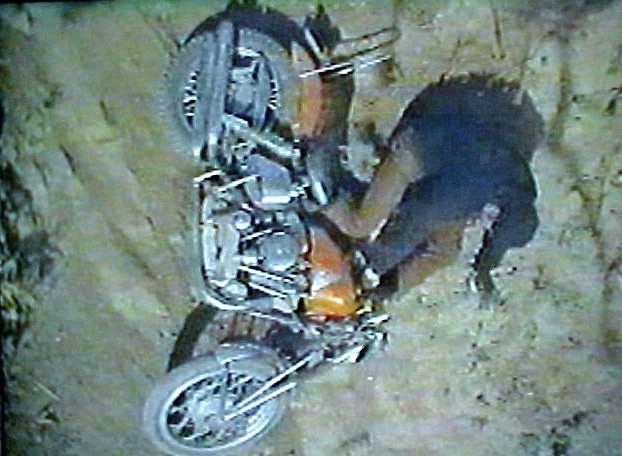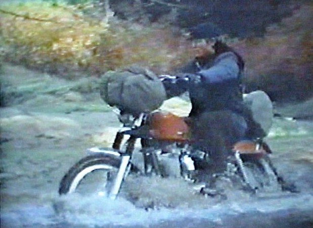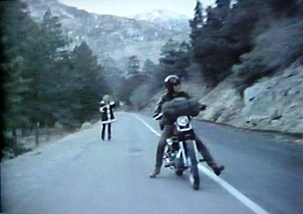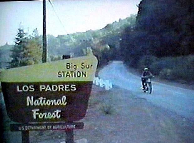 Jim heads for high lonesome, with bad weather closing in, he looses control on the mountain road and his bike falls down the slope with him tumbling after it. Filmed in Big Sur California.