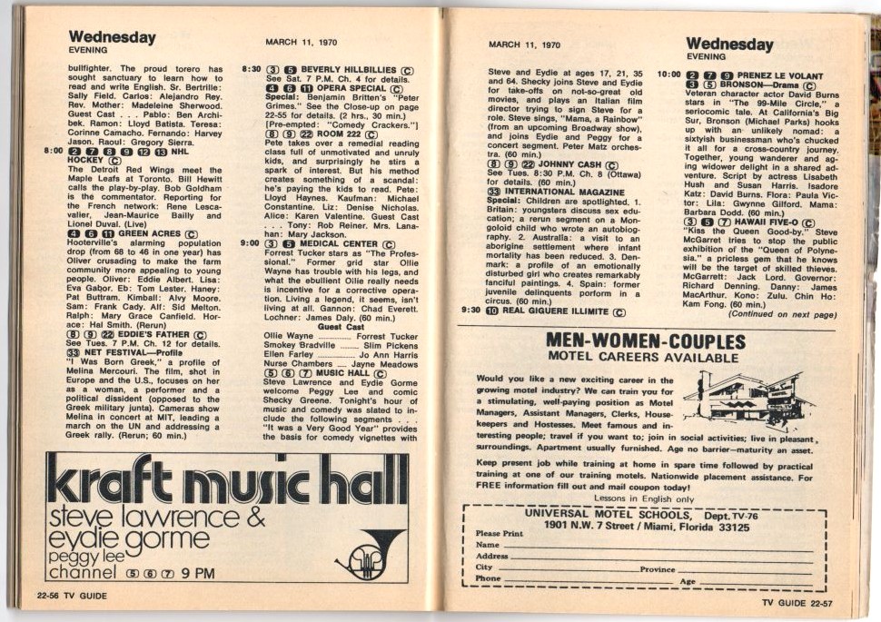 Then Came Bronson Ep. 24 which aired 11 March 1970 as listed in TV Guide during the week of 7 - 13 March 1970