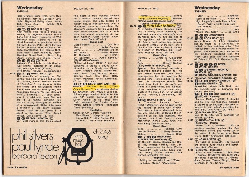 Then Came Bronson Ep. 25 which aired 25 March 1970 as listed in TV Guide during the week of 21 - 27 March 1970