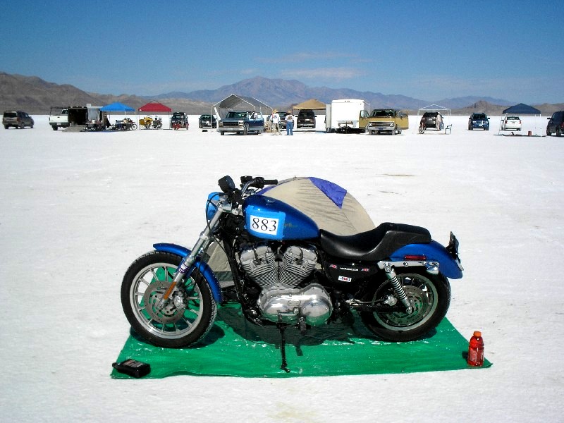 Diana heads for the Bonneville Salt Flats and on her 2007 883 Sporty turned 99 MPH on the salt. |